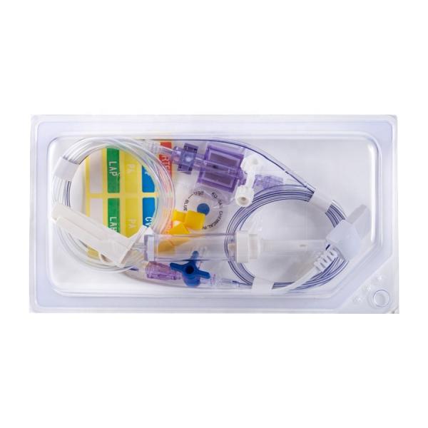 Transducer with flush, infusion set, pressure monitoring line, stopcock, Patient Card, Caps.